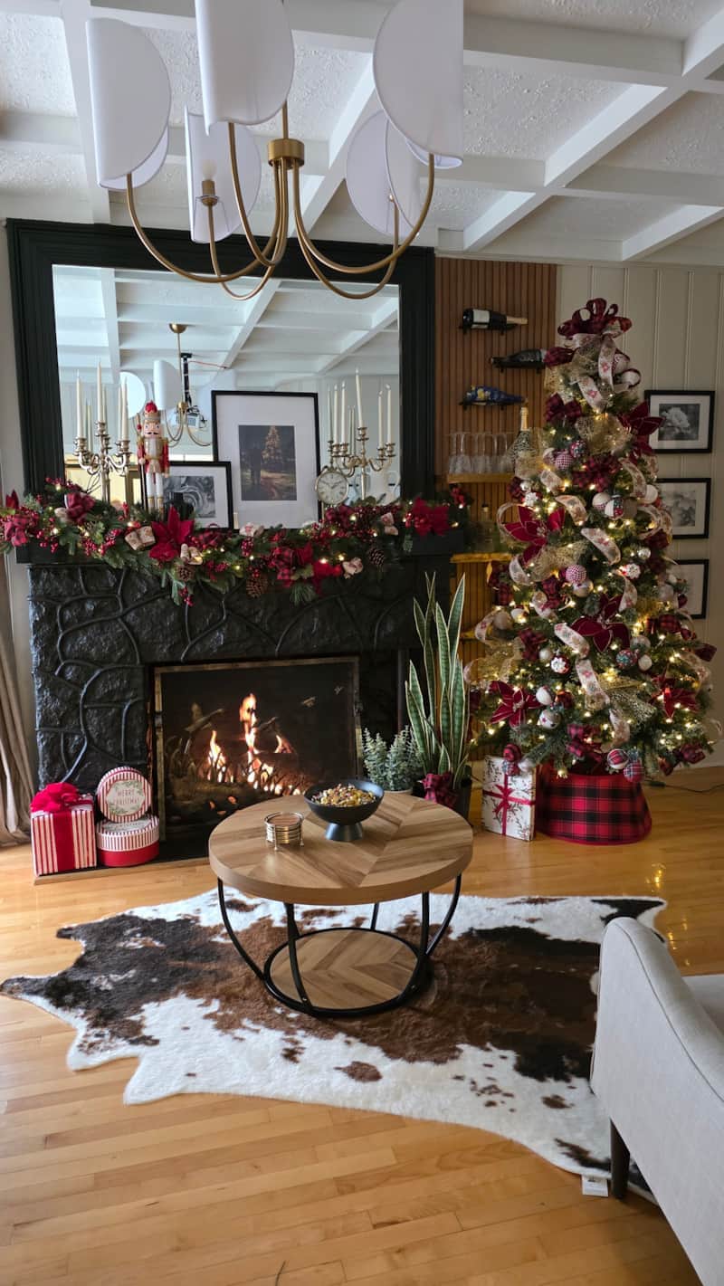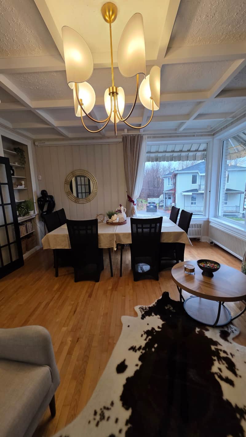 Le grand salon du Gîte Au P’tit Manoir est avant tout un espace chaleureux où les invités aiment savourer leur déjeuner autour du feu.